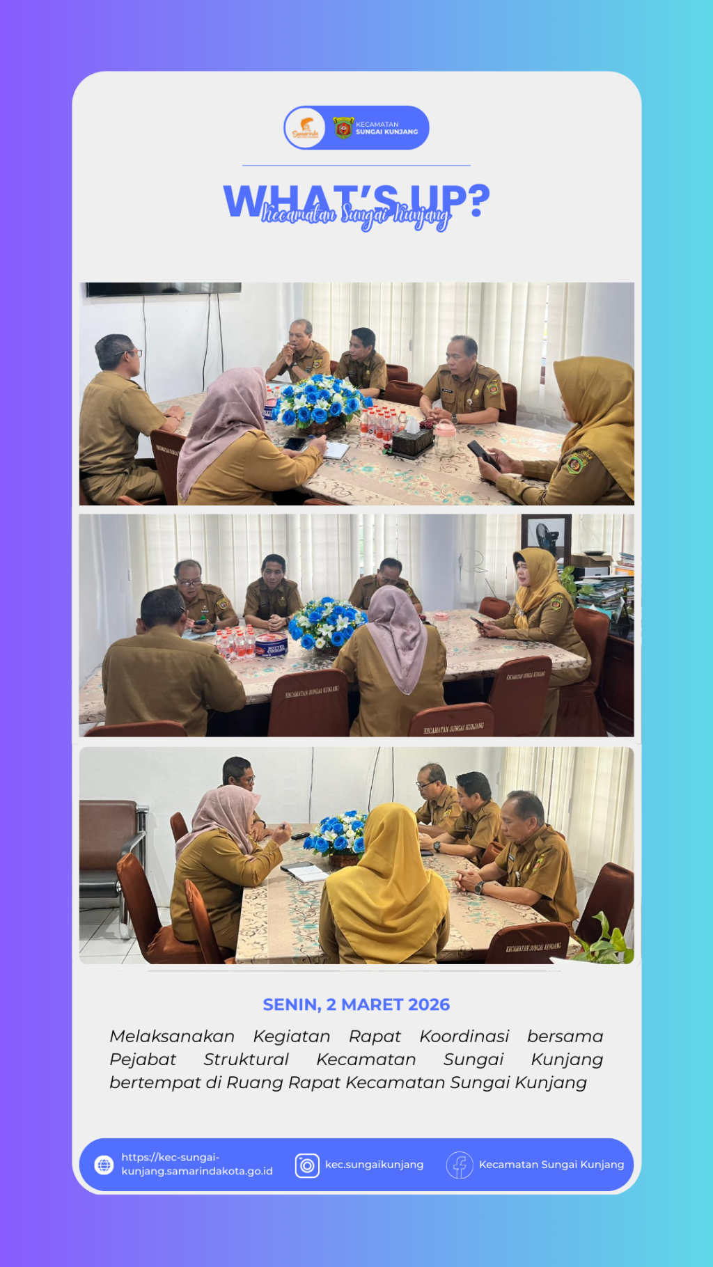 FB: Kantor Kecamatan Sungai Kunjang; IG: sungaikunjang; Email: kec.sungaikunjang@gmail.com